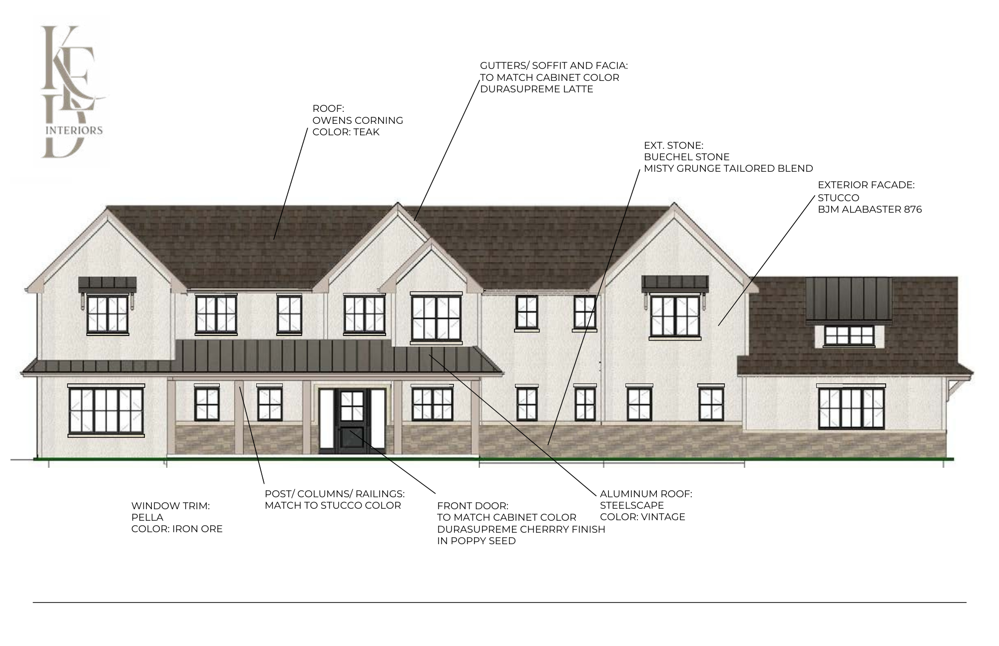 For example, in this custom home, the exterior stone selection and stucco tone were developed alongside the interior fireplace elevation, not after.